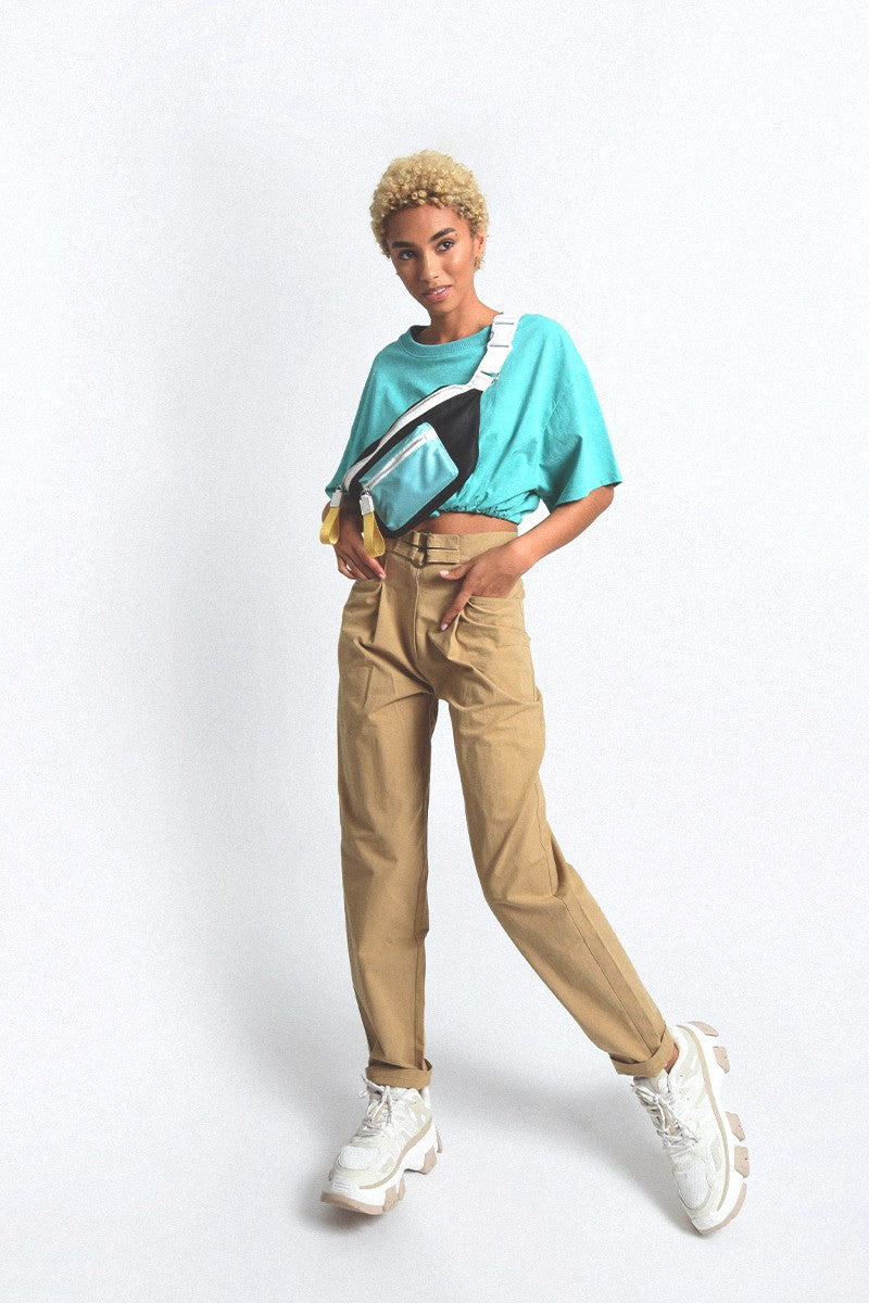 Pants for a chic silhouette, with a double buckle at the high waist and large pockets on the sides.