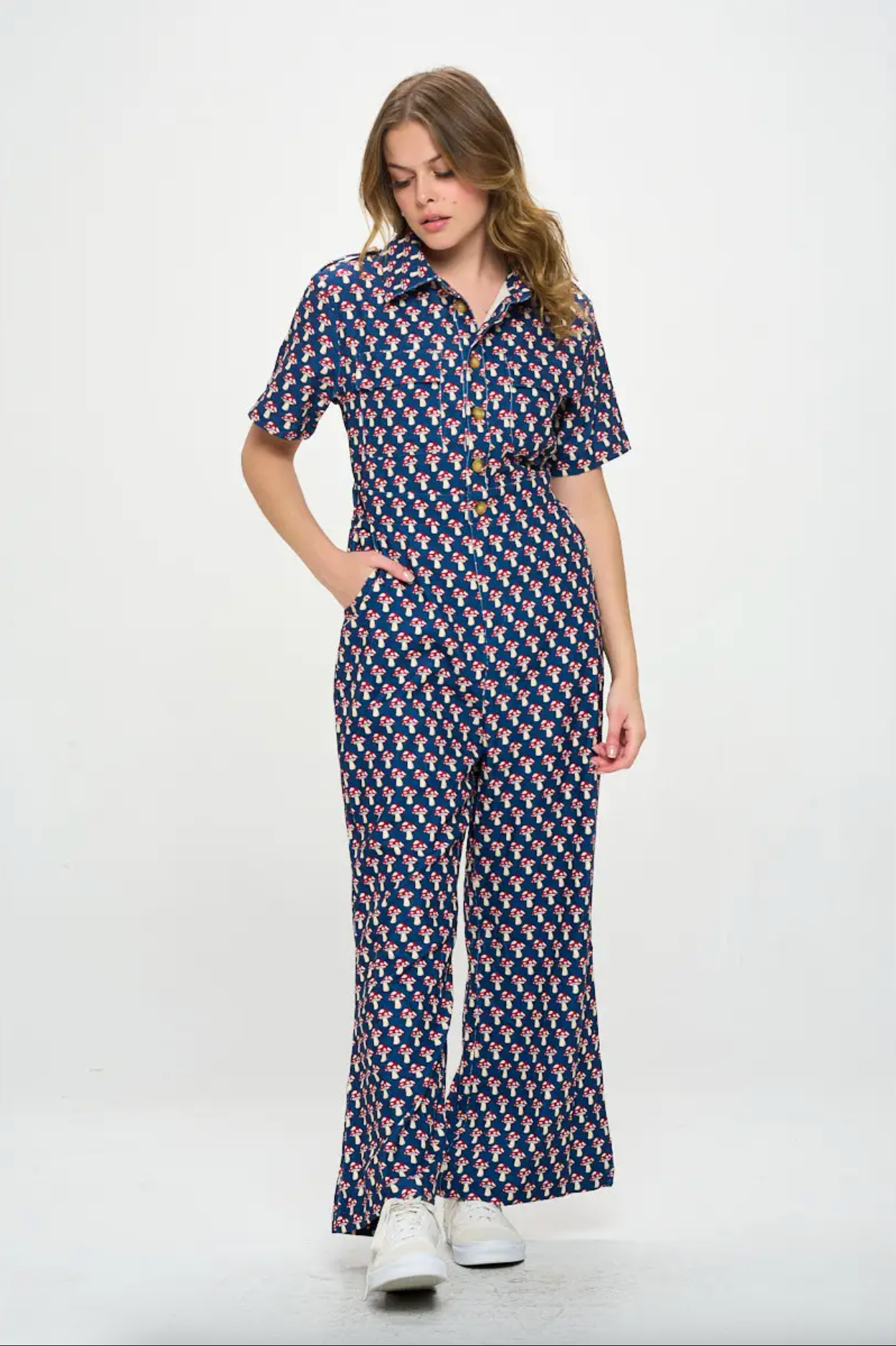 Mushroom Print Corduroy Jumpsuit