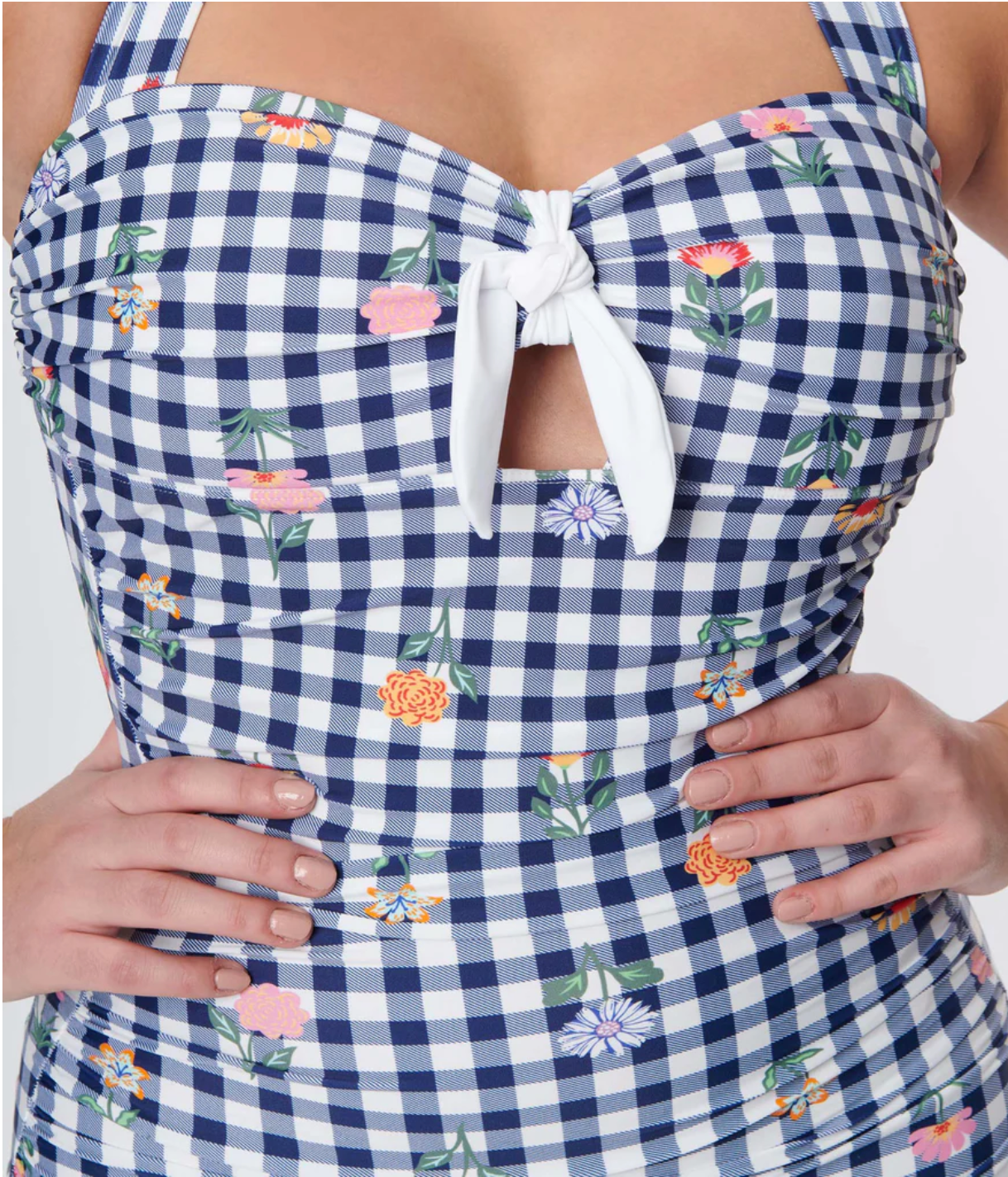 Navy Gingham Floral Swimsuit