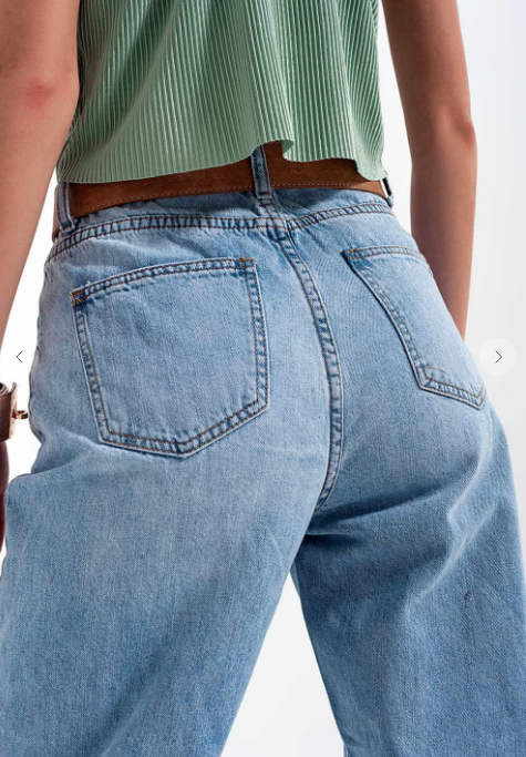 Jeans high rise belt loops five pockets straight fit regular on the waist non-stretch denim 100% Cotton Model is wearing size S. Model is: 31-22-36 Height: 5'7''. Runs true to size. Regular Fit. Rise: High Waist. Length: Ankle Length