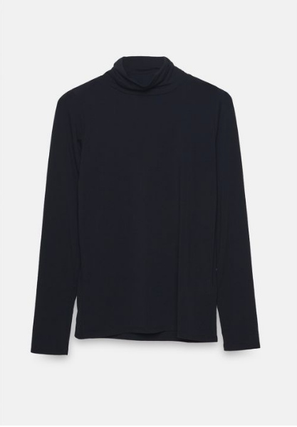 op in black elasticated fabric. Polo neck. Long sleeves. Model wears size S.