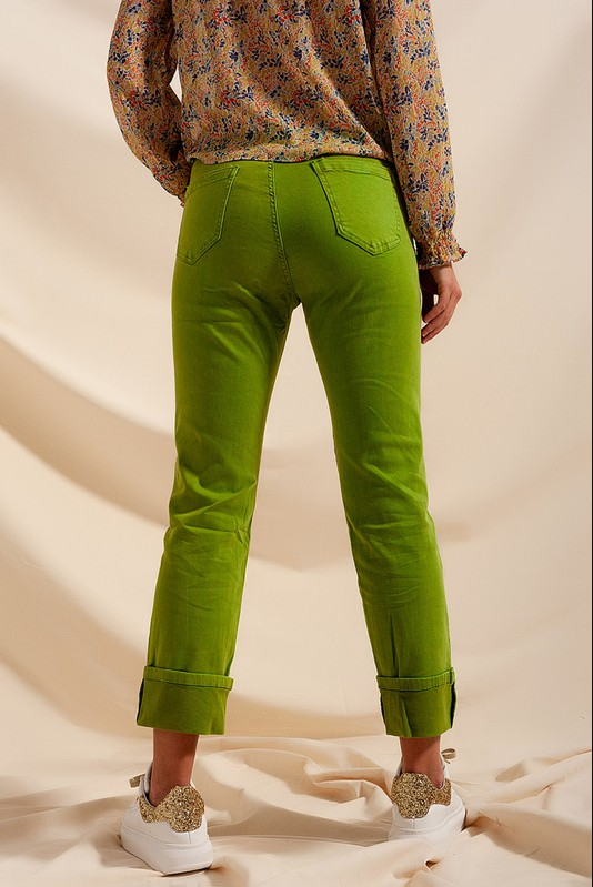 Straight leg jeans with deep turn-up hem including belt loops, five pockets, and fly front zipper in an elastic denim fabric. 97% Cotton 3% Elastane Model is wearing size S. Model is: 32-24-35 Height: 5'9''. Runs true to size. Regular Fit.