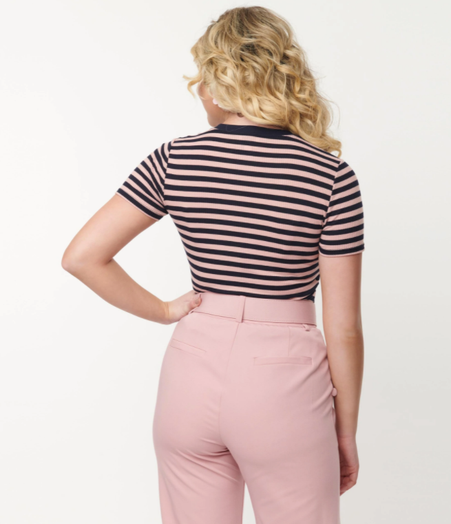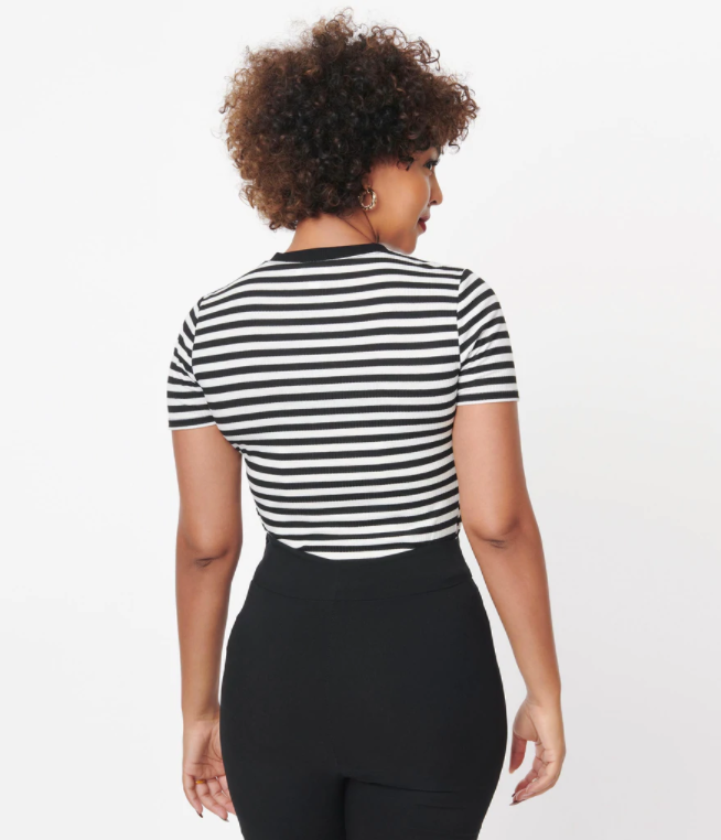 The Back to Basics top from Unique Vintage is crafted in a marvelous stretch knit blend and boasts a fun striped pattern throughout. The crew neck is framed by short sleeves, complete with a straight hemline!