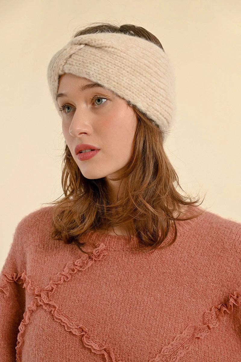 Thick, cold-weather headband in a ribbed knit with a twist in the front.
