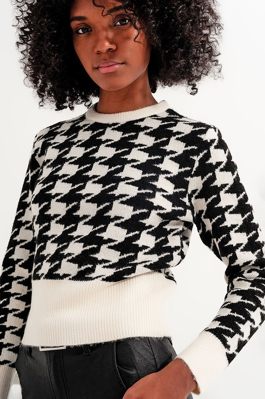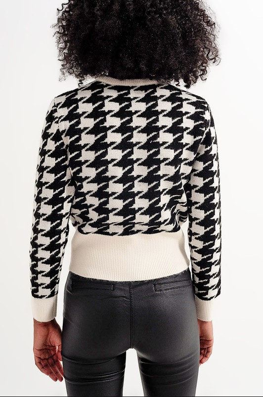 Super warm long-sleeved sweater with a classic houndstooth pattern.